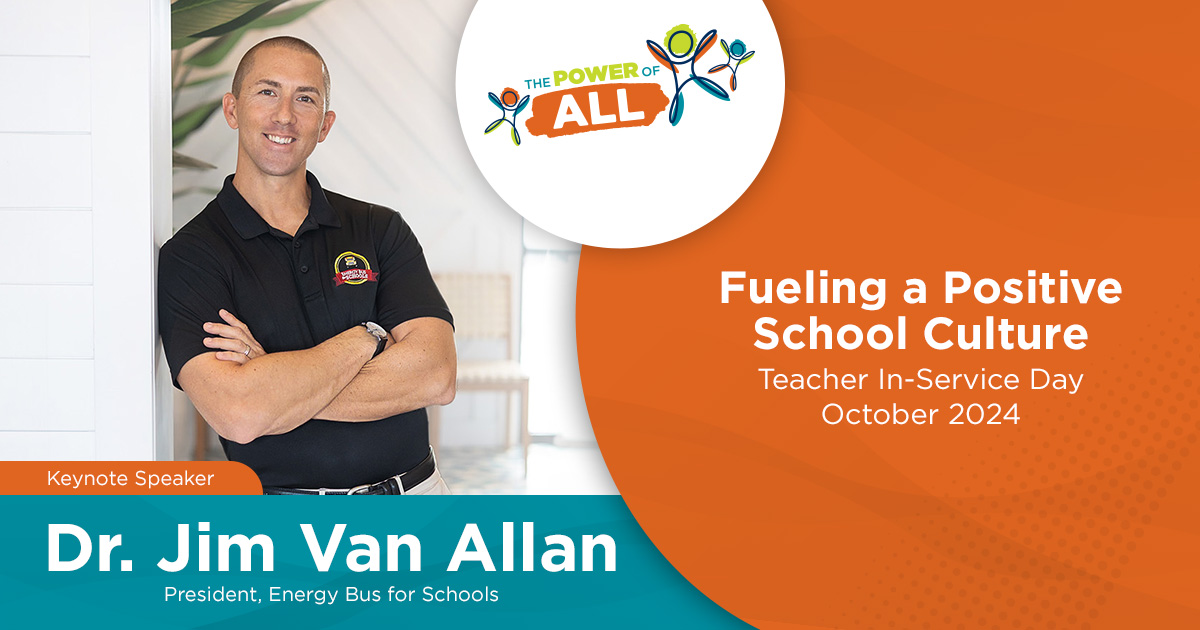 The book aligns with Dr. Van Allan’s commitment (and ours!) to coaching and training people on how to successfully implement a positive mindset through teamwork and communication. The Energy Bus approach is designed to motivate everyone—from the management team and teachers to the support staff, parents, and students. Each person plays a vital role in building a sense of unity in the school community so everyone can grow, learn, and thrive—together.